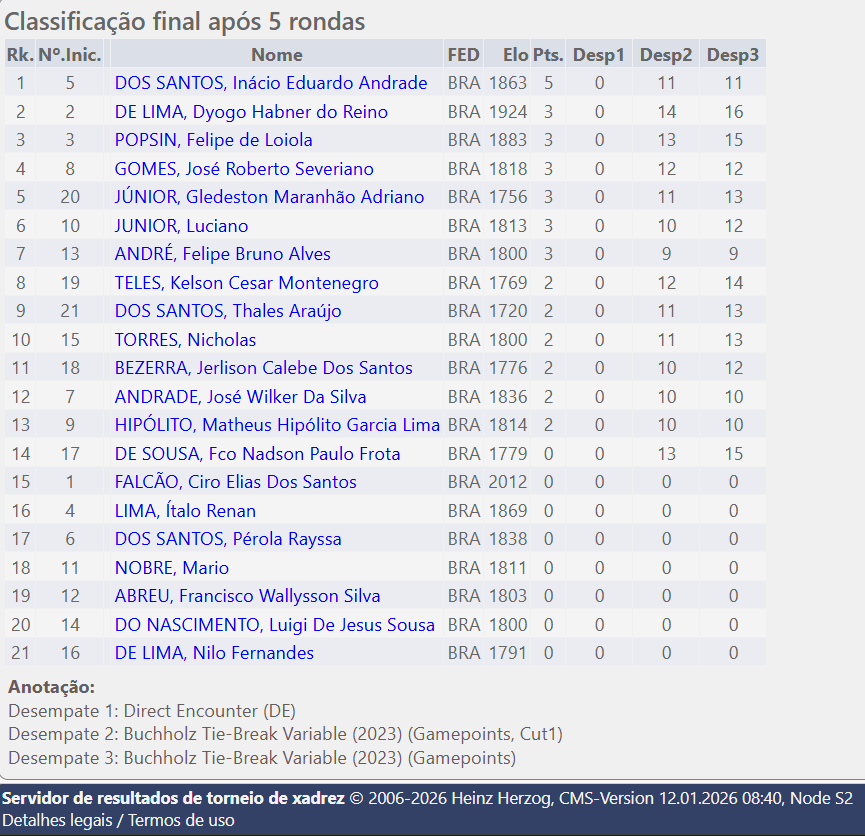 2º CXR REDE CUCA José Walter 20 de dezembro de 202518 de janeiro de 2026 xadrezdagente Esportes Fonte: https://s2.chess-results.com/tnr1322521.aspx